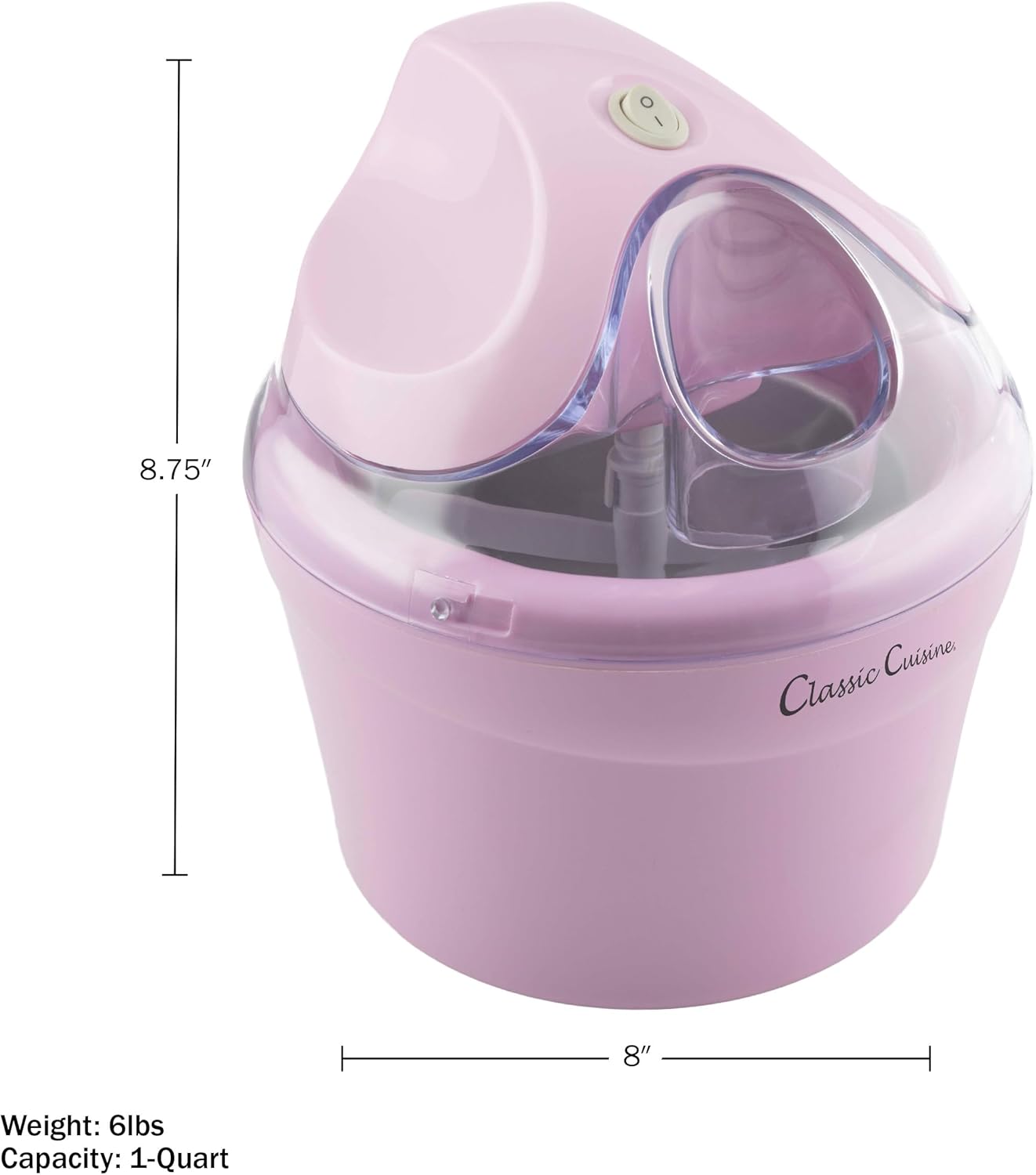 Ice Cream Maker - 1QT Ice Cream Machine for Sorbet, Gelato, Frozen Yogurt and More - Kitchen Appliances and Gadgets by Classic Cuisine (Pink)