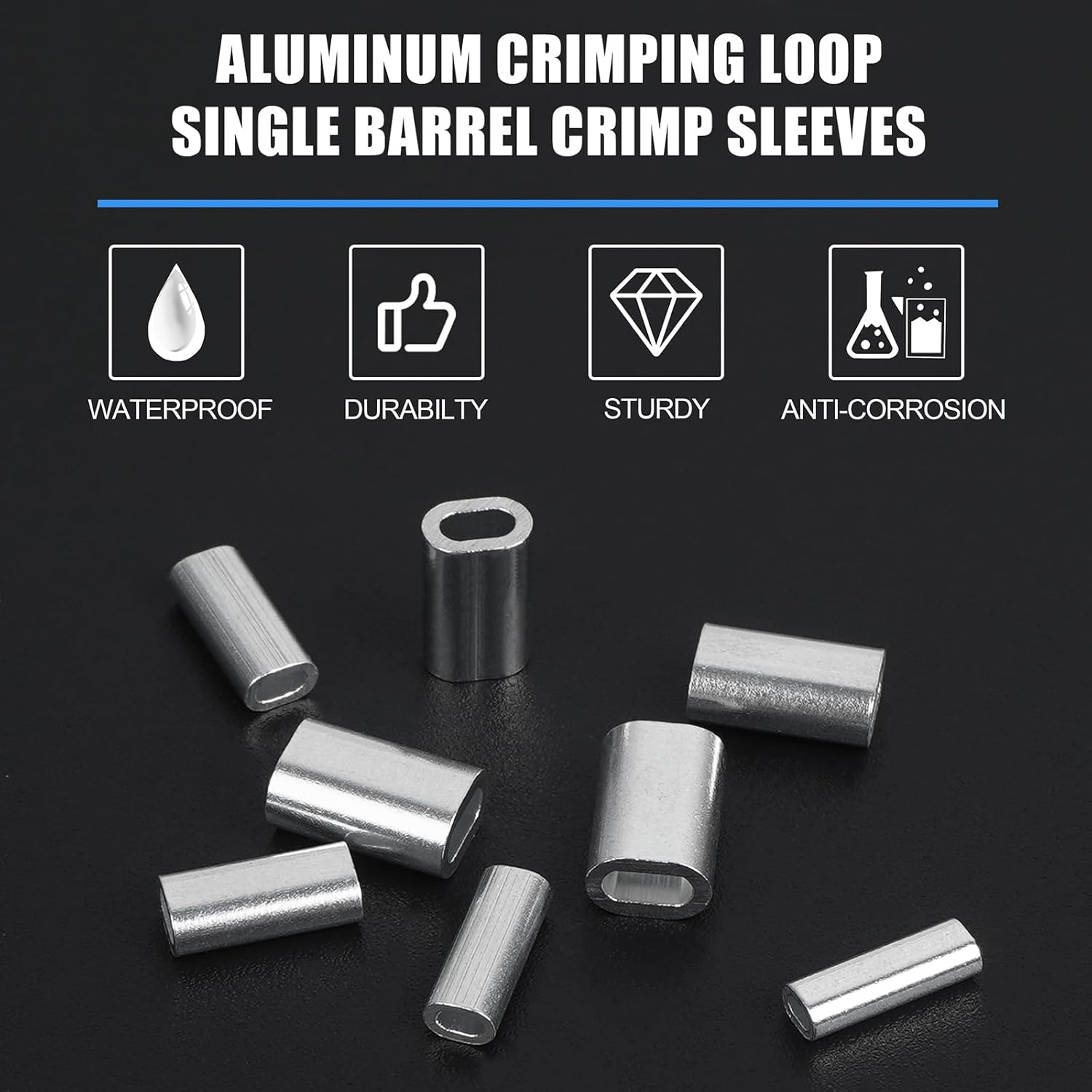 JSHANMEI Fishing Line Crimp Sleeves Aluminum Single Barrel Crimp Sleeves Oval Crimping Loop Sleeve Fishing Leaders Rigging Tackle Wire Rope Cable Line Tube Connectors