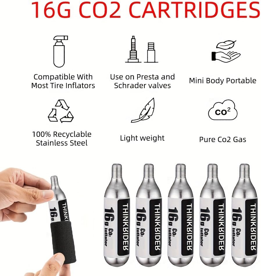 ThinkRider 16g Threaded CO2 Cartridges, CO2 Cartridges for Use with CO2 Bike Tire Inflator, C02 Cartridges for MTB & Road Bikes,Quantity 10