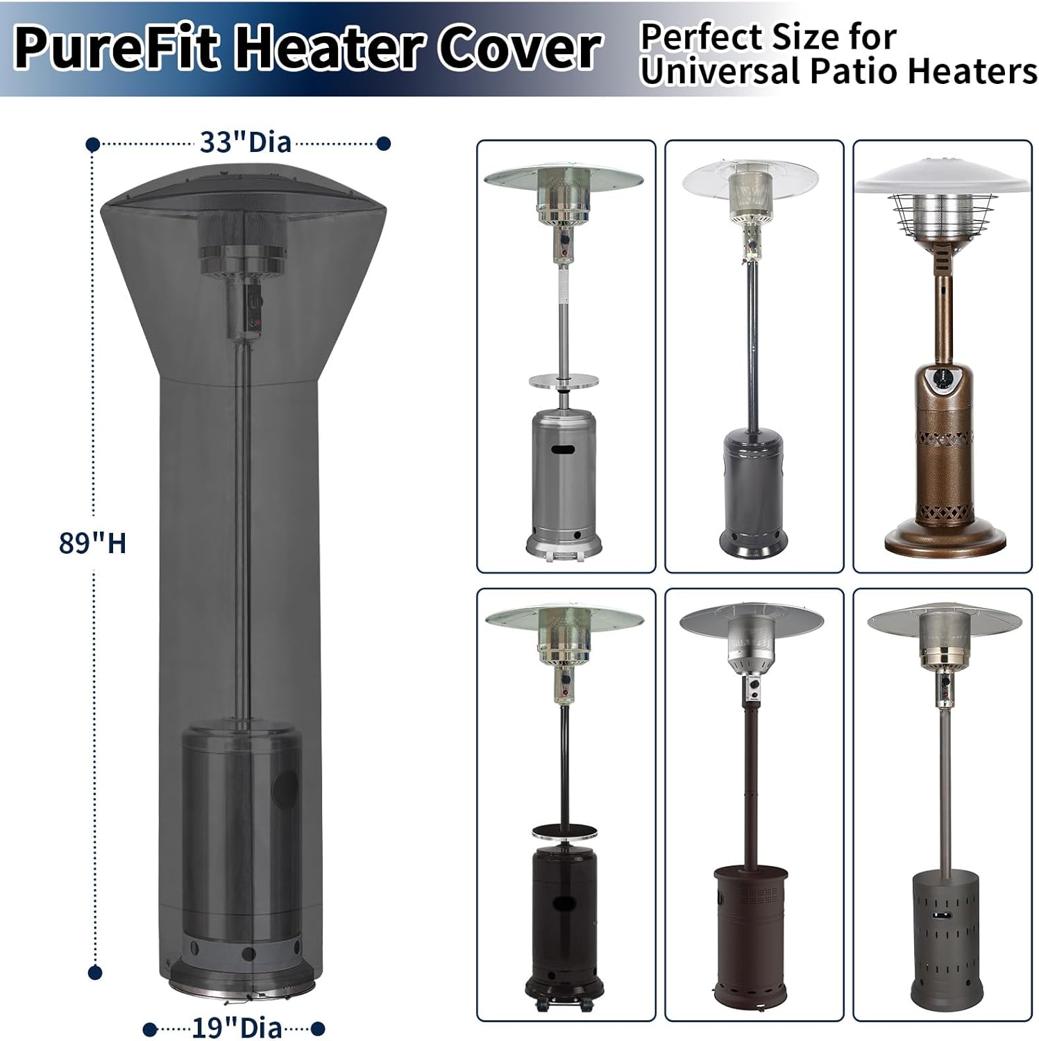 PureFit Waterproof Patio Heater Covers with Zipper, Heavy Duty Garden Windproof Heater Protector with Storage Bag, UV-Resistant Windproof Standing Heater Covers, Black, 89”H x 33”D x 19”