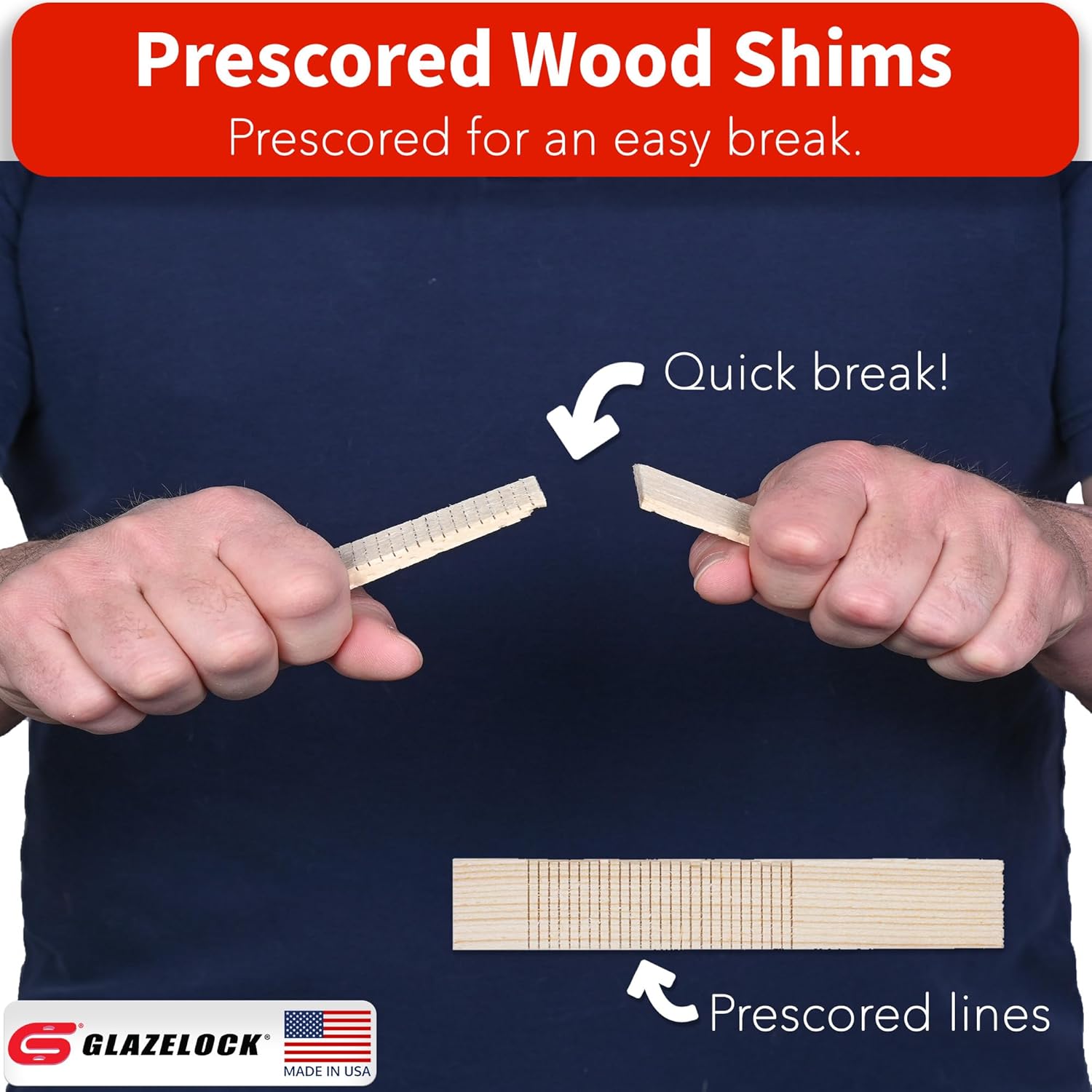 - •PROFESSIONAL GRADE: Glazelock wooden shims for leveling are 100% kiln dried for durable performance and are trusted by professional contractors to level and align joists, doors, counters, sheetrock, furniture and much more!
