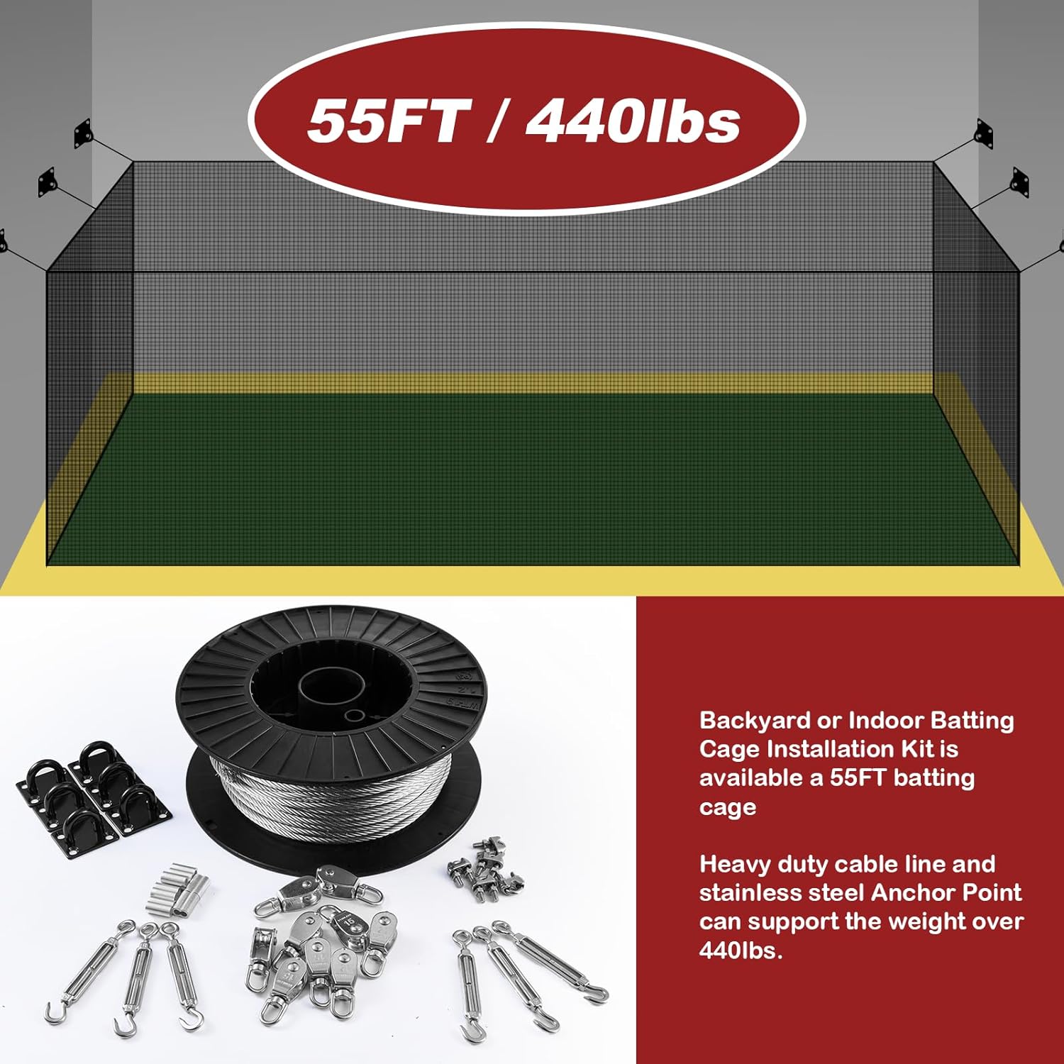Stainless Steel Batting Cage Netting Wire Tension Kit(35FT/55FT/70FT), Retractable Batting Cage Cable Kit Suspension, DIY Batting Cage Indoor and Backyard Design, Batting Cage Frame Kit