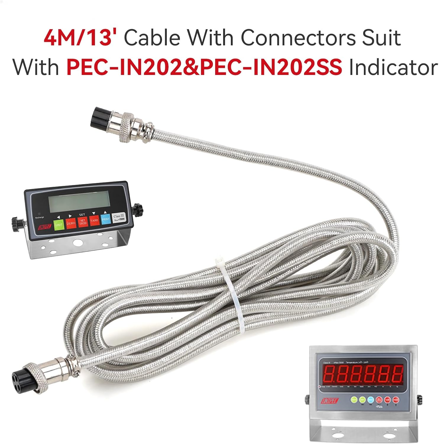 - •Fits All PEC Scales: The Cable with 4 Pin quick disconnectors on both ends,suit with PEC-IN202 & IN202SS Indicators. And all floor scales with 4-hole connection. Examples: industrial scales, animal scales, warehouse heavy duty scales, postal scales, etc.