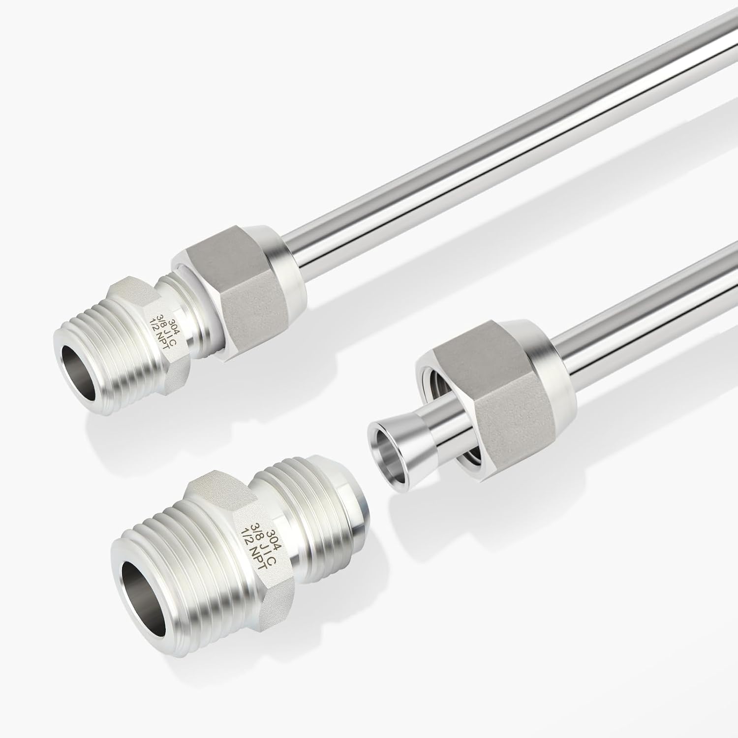 TAISHER 2PCS Forging of 304 Stainless Steel JIC Flare Tube Fitting, 3/8" JIC Male x 1/2" NPT Male, Half Union