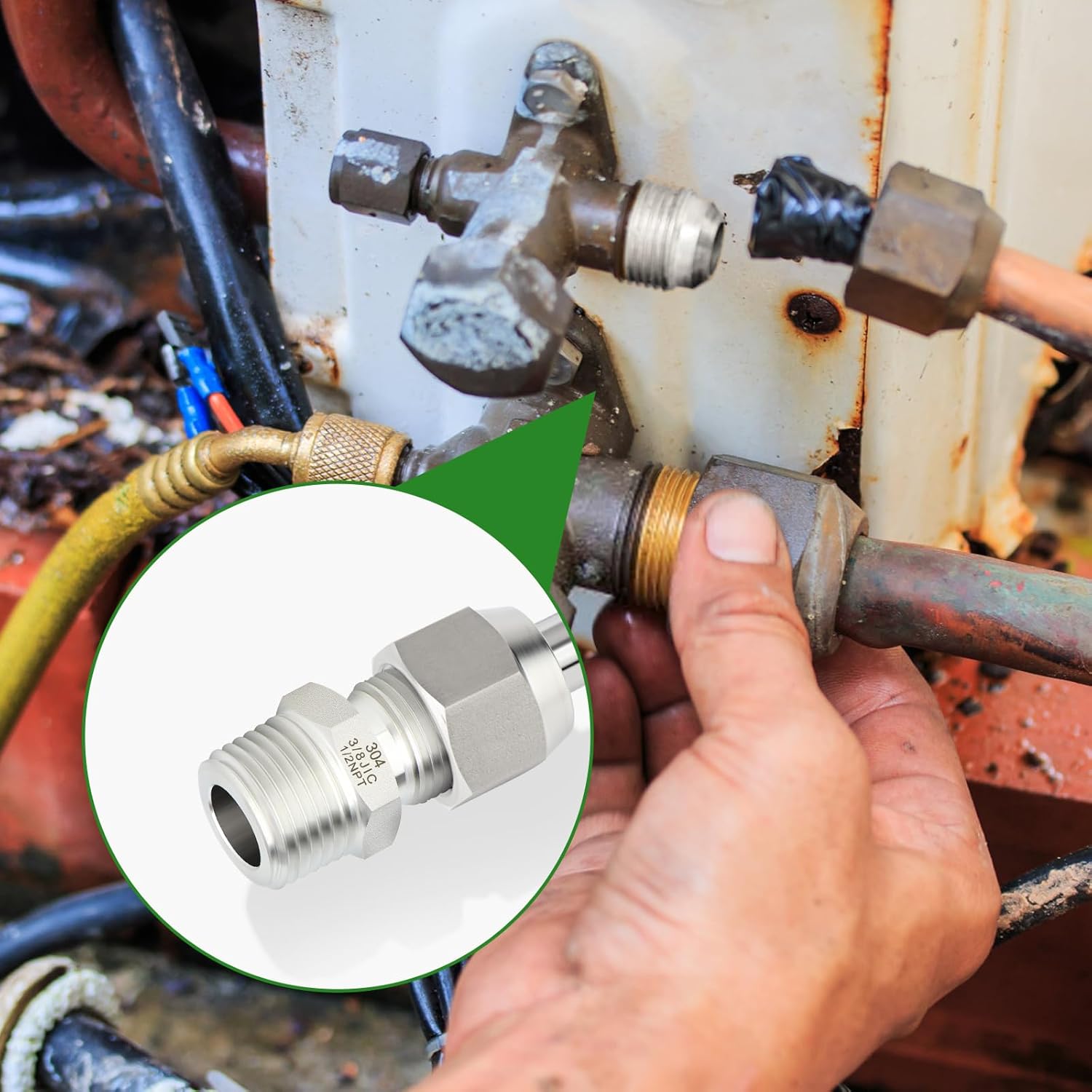 304 Stainless Steel Pipe Fitting TAISHER 304 Stainless Steel JIC Flare Tube Fittings , used for industrial connection of pipes or fittings of different end types, diameters or materials. It is a component used to connect, terminate, control flow and change the direction of pipelines in many different industries. It can be applied to water, air, gas, oil, fuel, refrigeration, meters, etc. (NPT thread size is not the actual diameter, it is only the nominal pipe size) For better sealing, we recommend using Teflon tape for pipe fittings. The accessory is made of 304 stainless steel, which has low temperature resistance, high temperature ductility and low magnetic permeability. This flaring joint is suitable for fuel and gas systems, piping, refrigeration and vacuum applications, and is used with brass, steel, and iron pipes. The Flare threaded Quick connects to a flared tube or fitting, no welding, just use a wrench to tighten , established for the development of e-commerce business, mainly serves the American industrial market, is committed to producing industrial-level high-quality products. Has a professional manufacturing team, design And supporting various hardware tools, pneumatic tools, auto parts, including air hoses, high-precision pressure gauges, drills, can presses, etc. Bushing Reducer Adapter 90 Degree Elbow Nipple Coupling Plug Tee