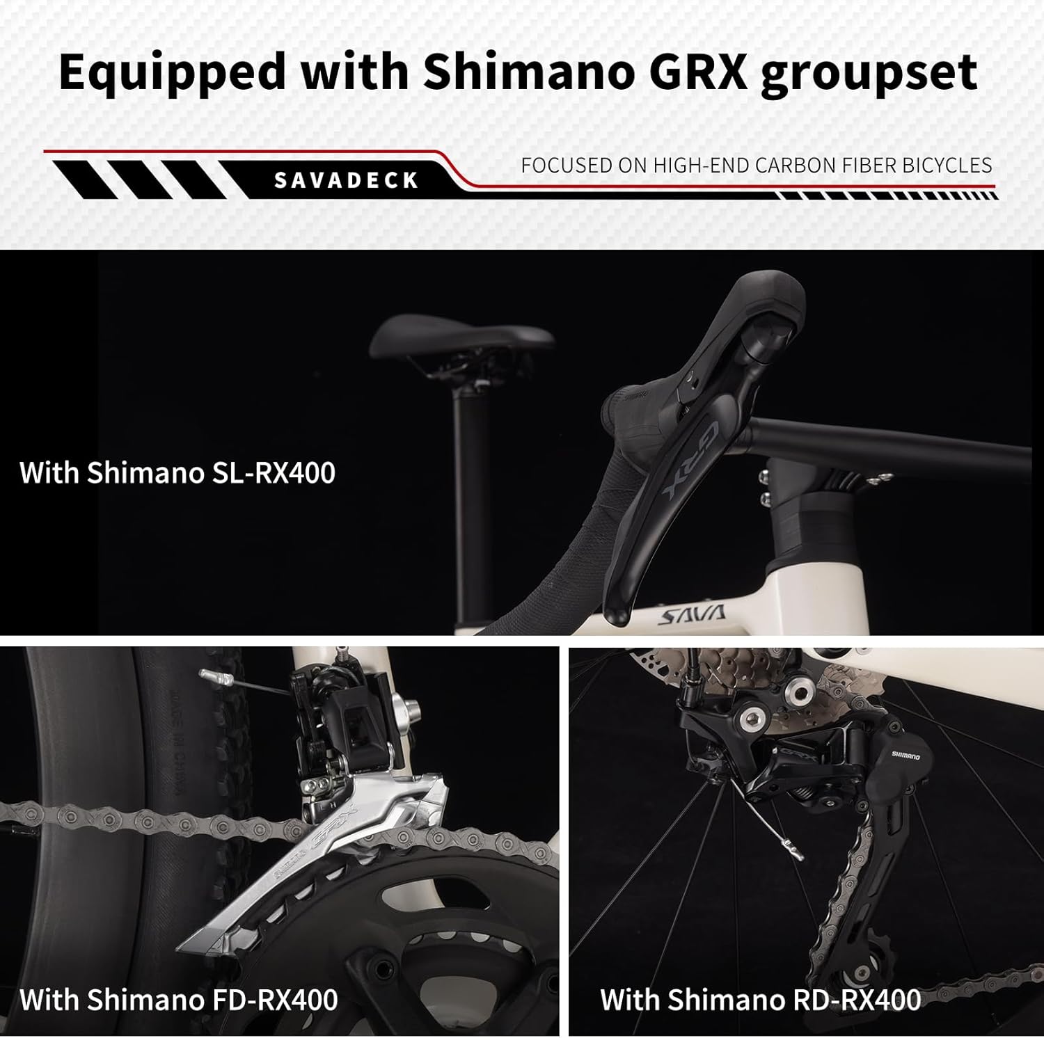 SAVADECK Carbon Gravel Bike - T800 Carbon Frame & Fork, Shimano GRX400 20-Speed Groupset, Hydraulic Disc Brakes, 700C x 40mm Tires - Lightweight Design for Road & Off-Road Adventures