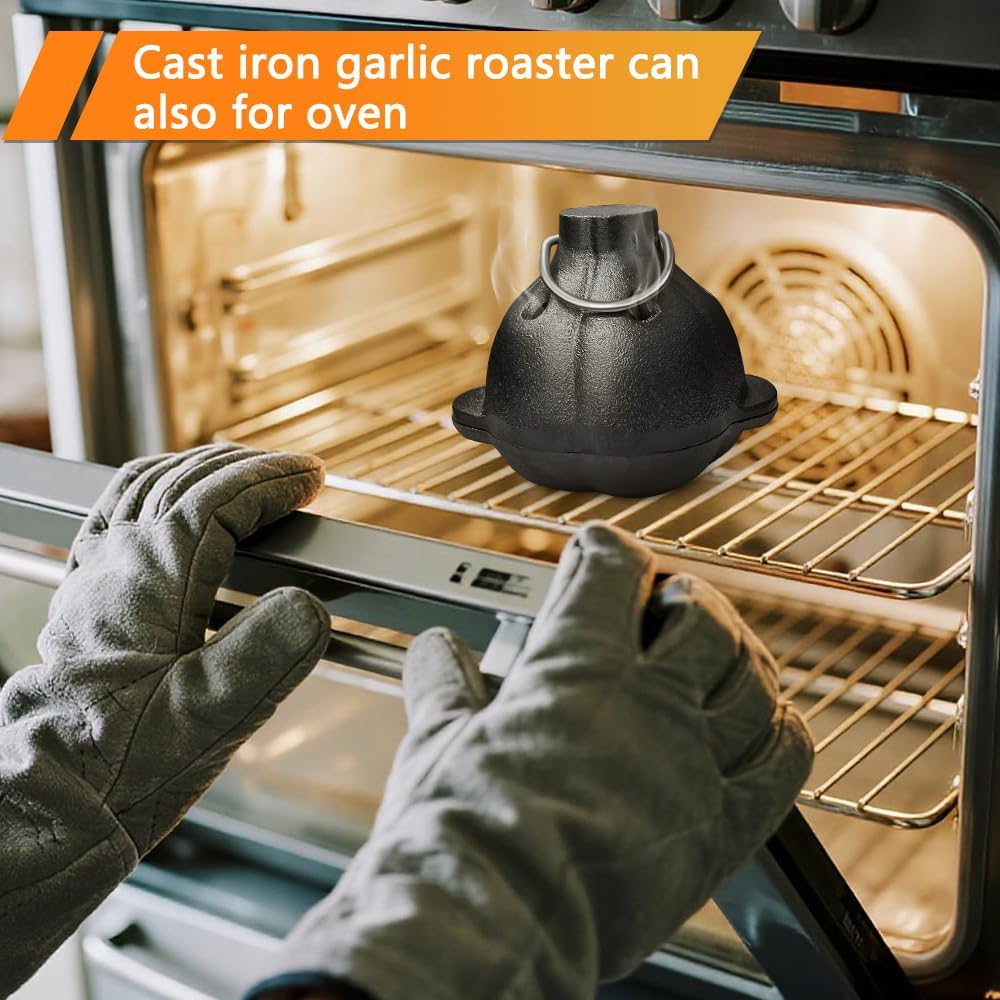 - •【🔥 Premium Cast Iron, Even Heating】Built with heavy-duty cast iron for lifelong use. Pre-seasoned right out of the box for non-stick performance and rust resistance. The classic cast iron design distributes heat evenly, guaranteeing soft, creamy, and perfectly caramelized roasted garlic every time.