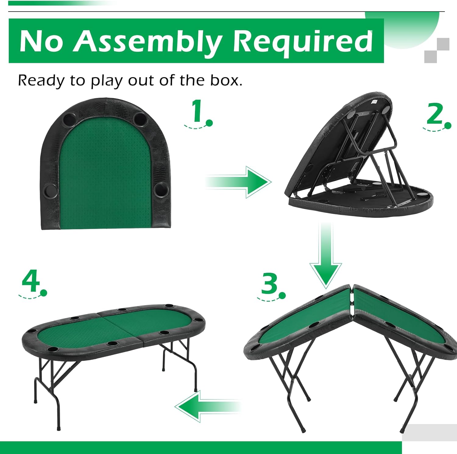 ECOTOUGE Poker Table Foldable, 8 Players Gaming Table w/Portable Oxford Bag, Folding Oval Texas HoldemTable with Stylish Padded Rails for Casino Leisure Game, No Assembly Required, Green