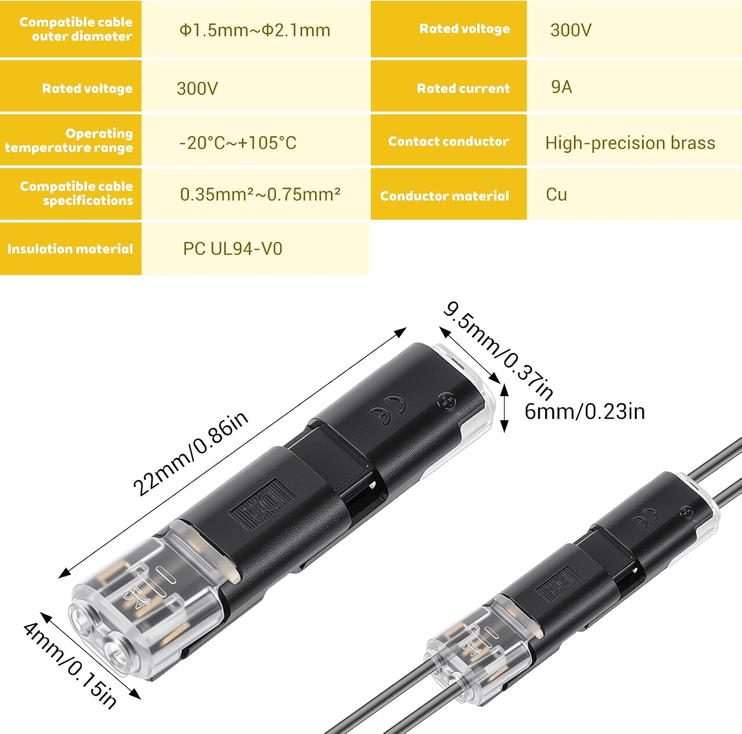 - •High Quality Material: These 2 wire connectors are made of high-quality polycarbonate materials and have strong stability. The LED plugs are made of the best flame-retardant insulation material modified copper, which is voltage-resistant and anti-electric shock