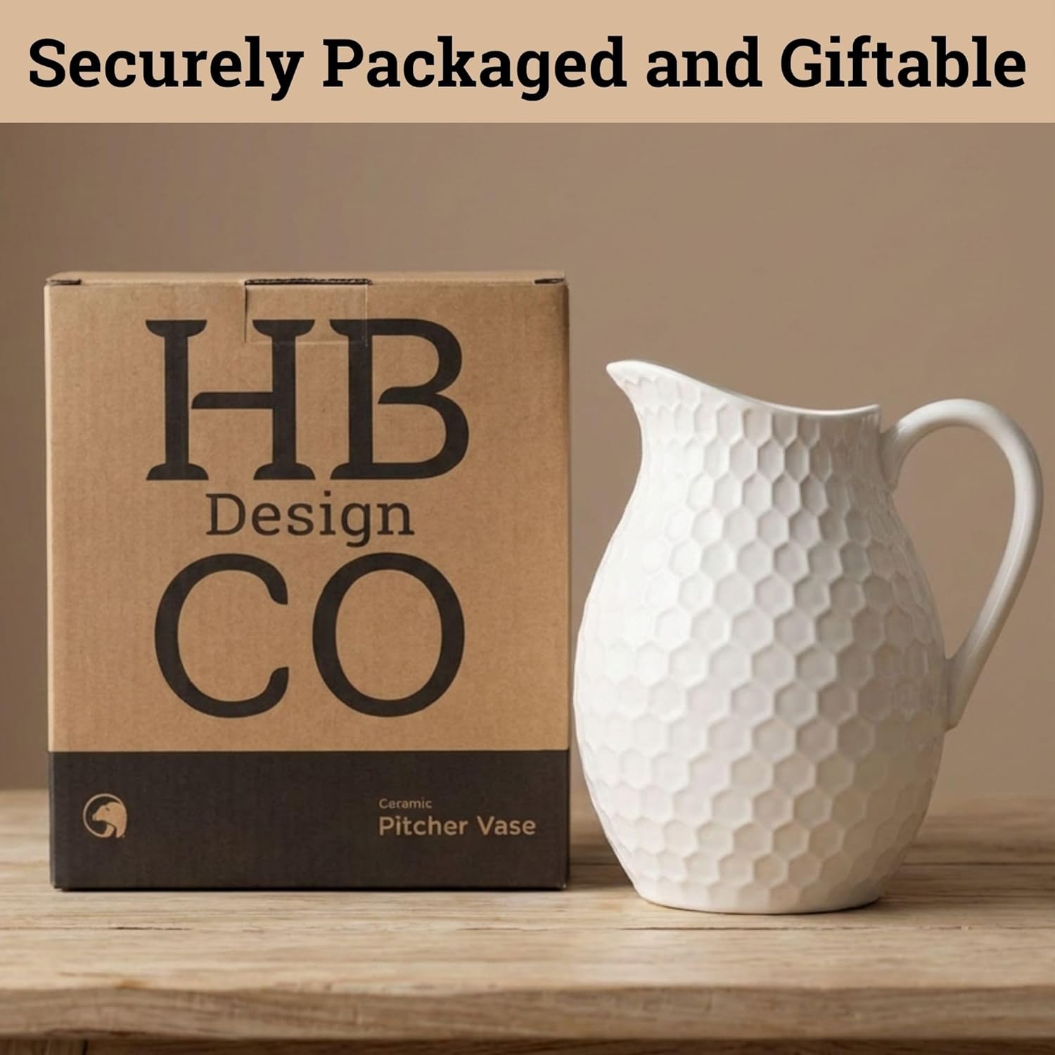 HB Design Co. blends timeless style with exceptional quality, offering beautifully crafted home décor and household items to help create your dream home. Every product is thoughtfully designed with an emphasis on quality materials, durability, and premium style. From unique décor accents to practical kitchen items, our products make style an accessible part of everyday life. This white ceramic pitcher vase is 7 inches wide and 8 inches tall, making it ideal for arranging fresh flowers, dried flowers, dried stems, or pampas grass. Perfect for styling your entryway tables, kitchen counters, dining tables, farmhouse shelves, and MORE! This aesthetic white pitcher vase is made from high-quality durable ceramic that is glazed to be waterproof, so it will not leak or break easily. The ergonomic handle makes this medium-sized flower pitcher comfortable to carry and pour. This decorative pitcher vase has a stylish honeycomb texture that stands out, complementing its unique curved shape. It is stylish yet minimalist, perfect for any décor or occasion. This ceramic water pitcher has a smooth flat base that will not wobble, slide, or scratch surfaces. This Ceramic Pitcher Vase was designed for online shopping, meaning it is made and packaged to be delivered - impact proof and drop tested, it will arrive intact and ready to look fabulous; no more receiving damaged products! Fruit Bowl Olive Oil Dispenser Indoor Herb Planter Hair Tool Organizer 24in Large Wall Clock Indoor Watering Can 35oz Kitchen Canisters - 4 Set