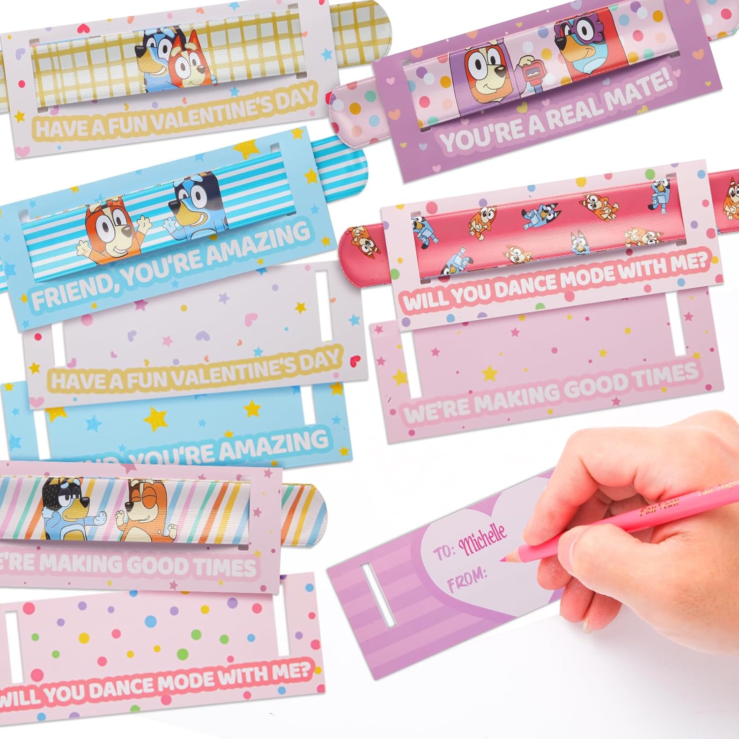 Super Value Valentines Kits : Includes 24 valentine cards (6 designs),24 unique Slap Bracelets (6 designs). Sufficient quantity of valentines day cards are perfect for classroom communication.